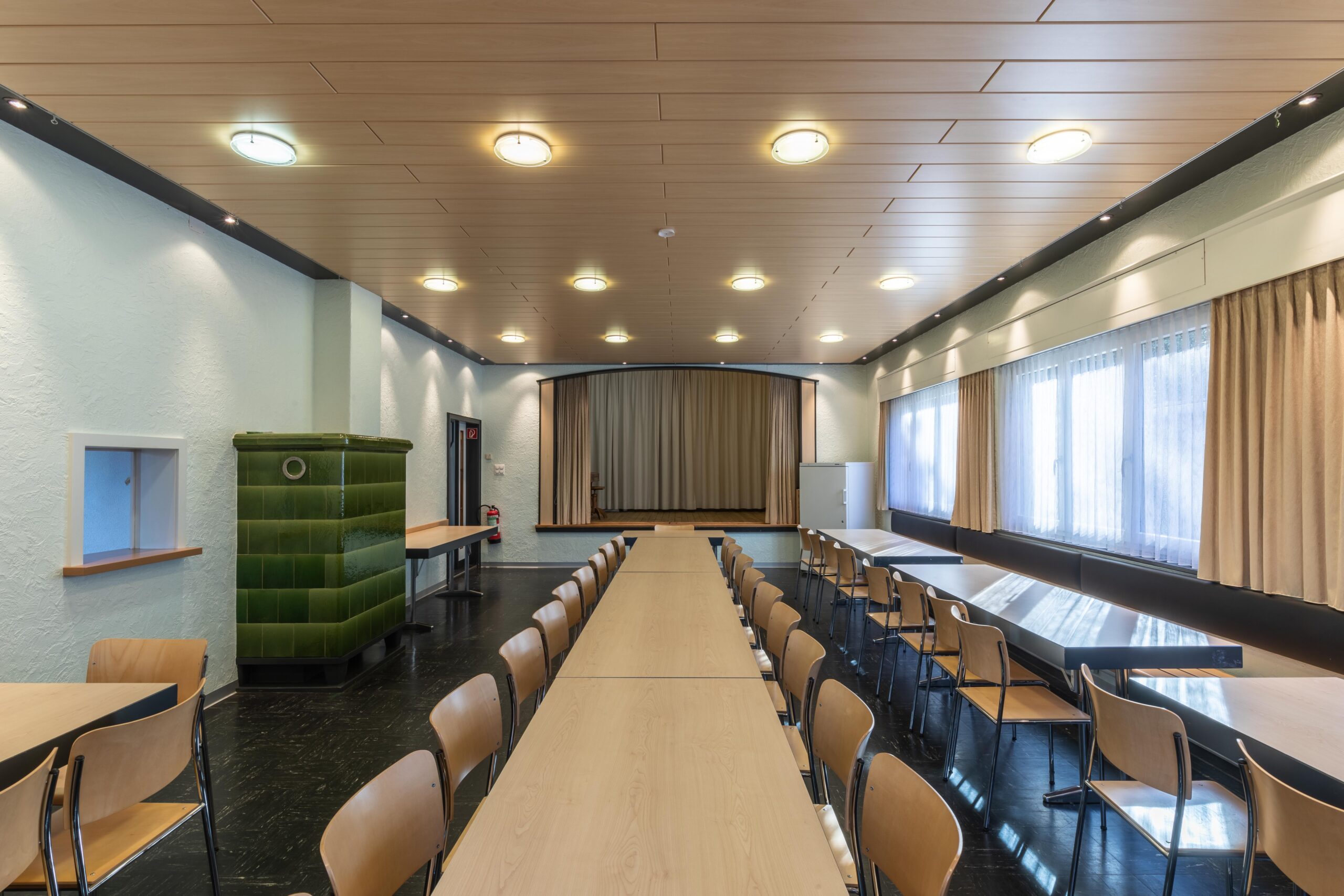 In Herzen unseres Vereinshauses finden Sie einen Saal der für ca. 50 Personen platz bietet. Er ist der ideale Raum für Ihre Versammlung, Sitzung, Firmen- oder Geburtstagsfeier. Eine Grossleinwand, Beamer, oder ein Hellraumprojektor kann gegen Aufpreis dazu gemietet werden.